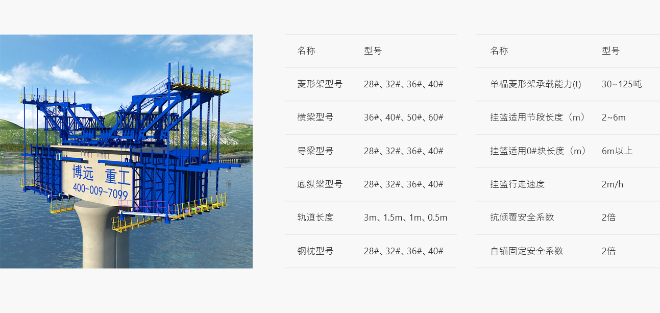 掛籃模版系統(tǒng)是用于連續(xù)懸臂施工的非標(biāo)機(jī)械裝備,博遠(yuǎn)掛籃多年來(lái)致力于掛籃的標(biāo)準(zhǔn)化和通用性研發(fā),目前擁有掛籃設(shè)計(jì)、制作方面實(shí)用新型專利60余項(xiàng),目前已研發(fā)至第五代,可以提供掛籃銷售、銷售回購(gòu)、租賃等多種合作形式,為客戶提供路橋裝備施工整體化解決方案。
